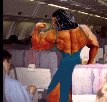 Su Lee continued to tease and arouse him with her exhilarating muscles. She stood up and opened her overhead compartment. She gave him a quick bicep flex but he was too absorbed in his reading.