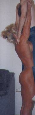 Her door was ajar. When I peeked in I could see past her living-room, down a hall and into an open bathroom door. She stepped into view with her hands over her head holding a blow-dryer to her blonde hair. Her only garment was a narrow towel that failed to cover the bottom edge of her ass and a glimps of her blonde bush. "Have a seat. I'm just getting dressed."