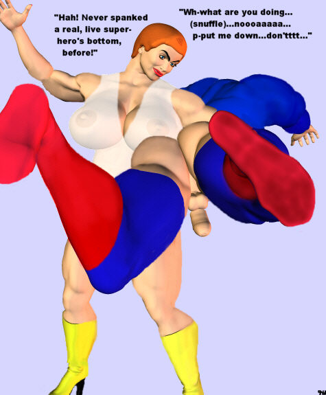 An unpleasantly surprised superhero discovered that his muscular backside was far from impervious to the hard right hand of a Kryptonian Dominatrix