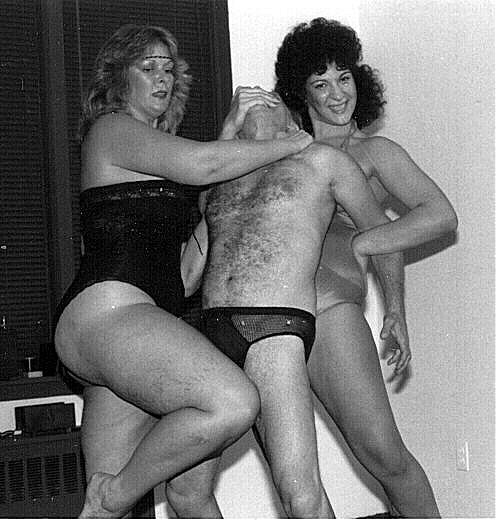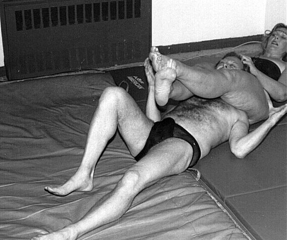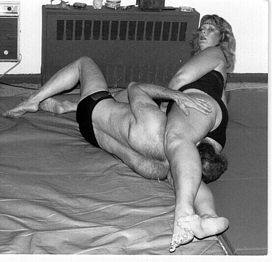 Well, we got to their apartment, still held fast on both sides, and went into a large living room which had wrestling mats on the floor instead of a carpet. I was still so mad at the put downs I had been getting from them that the mats didn't register on me. Pat locked the door with an inside key, and put it away while Gina distracted me my taking her coat off slowly. She then removed her sweats and got down to a bra and panties.