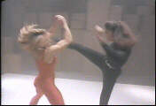 Geena followed up with a super kick to Super Cory's defenseless midsection...