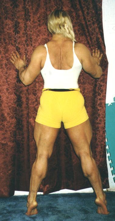 Sorry Arnold, they're bigger than yours ever were, and probably stronger too. Maria's quads are composed of twenty nine inches of fast twitch muscle capable of launching her clients into low Earth orbit. And with a 1350lb leg press, I think that she built her upper body just loading the sled.