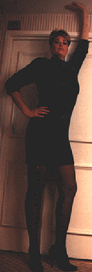 She wore a form fitting, short black dress that showcased her legs and ass. The 5" spike heels added to the impact and made her duck under low rafters. She sat down across from me, kicked of her shoes, and adjusted her massive chest in the tight dress. "Just try to find anything to fit a set of 40 Ds" she whispered to me.