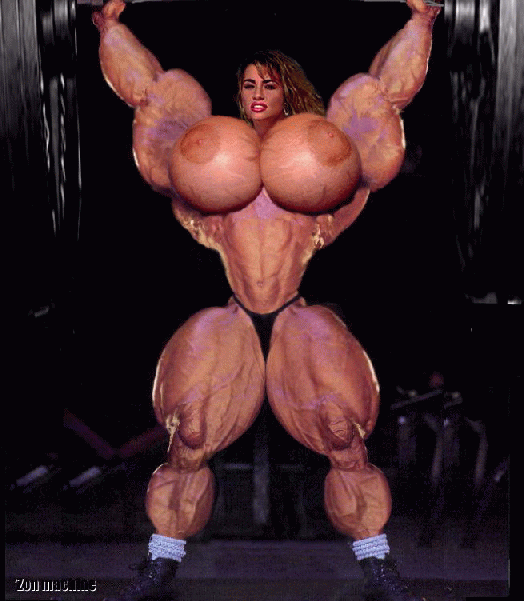 Rising from the seat, she looked at him, then looked at herself in the mirrors. She was glorious, a true amazon carved of solid muscle. But she was still relatively flat-chested in contrast to the rest of her pumped, throbbing body. "No, wait, Eugene, I need to work on my chest," she pleaded. "What exercise can I do for it?"