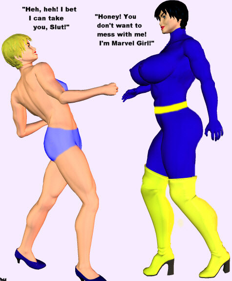 "Do you mean you want to fight me?" Marvel Girl looked at the girl in amazement, hardly able to believe her ears. This tiny blonde, looking hardly more than a teenager, wanted to fight one of the world's most powerful superheroines! This girl definitely was crazy!