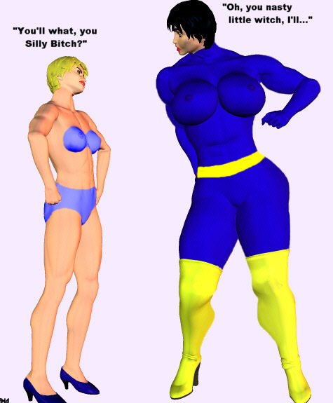 "Oh don't you dare call me that! You know how I hate it!" Snapped Amazon Glory, always a little sensitive about the extravagant generosity of her breasts, munificently large even by superheroine standards.